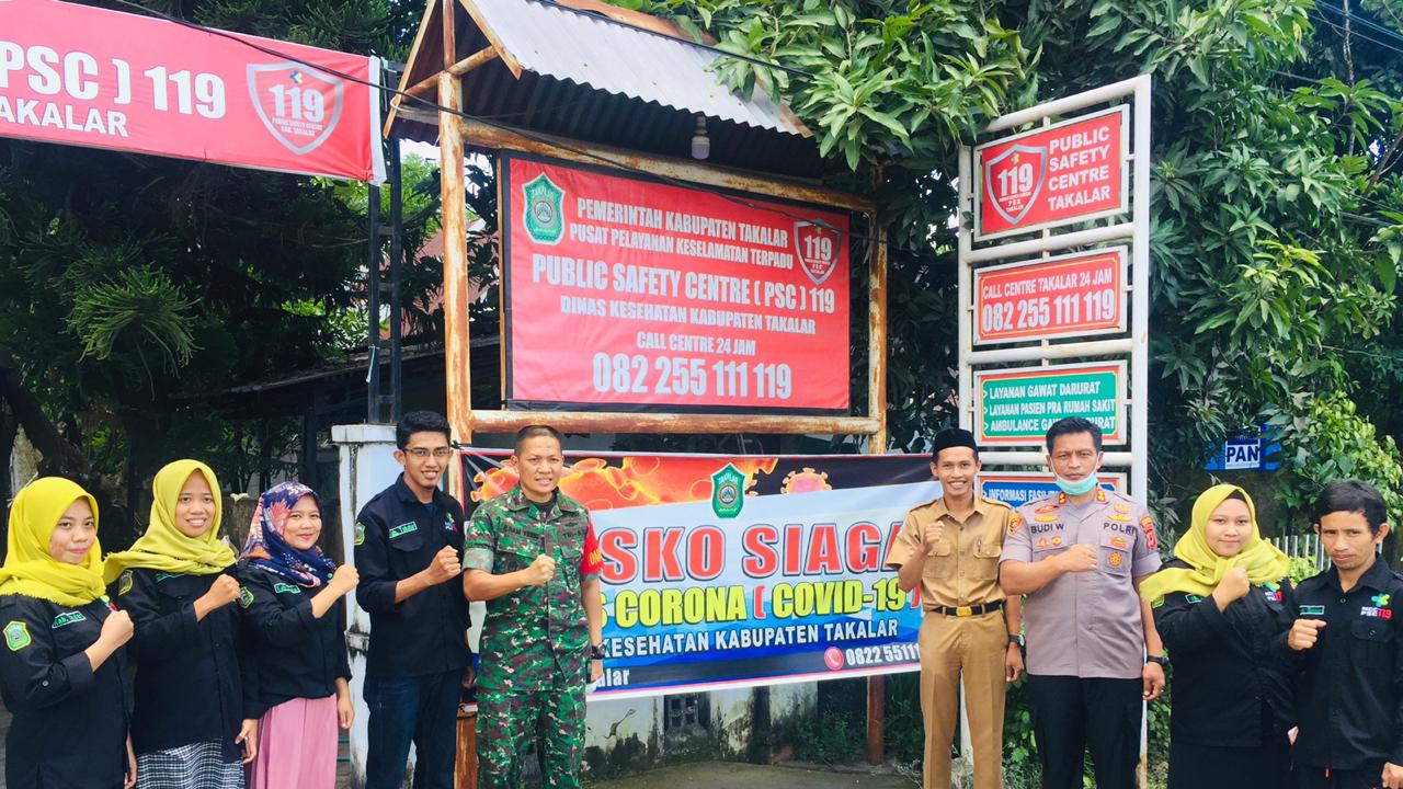 SULSELBERITA.COM. Takalar – Kapolres Takalar AKBP Budi Wahyono, S.H., S.I.K., M.H., bersama Dandim Takalar 1426 Letkol Inf Ilham Yunus, S.Sos., M.Si., memantau Public Safety Center (PSC) 119 yang juga merupakan posko penanganan virus Corona (Covid-19) di Jl. Jenderal Sudirman Takalar, Senin (23/03/2020).