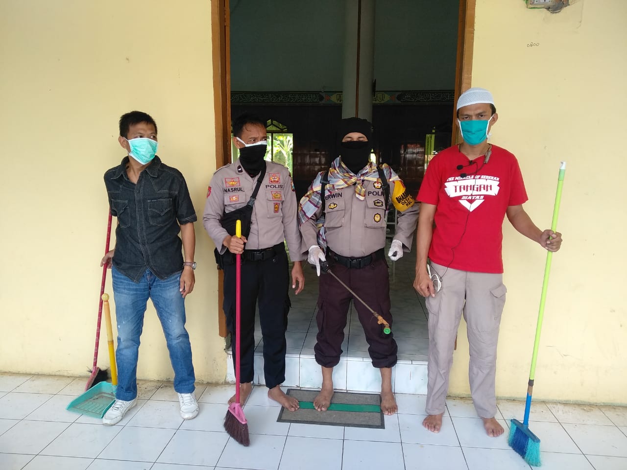 Setelah penyemprotan dilakukan di Mako Polsek, personel kemudian melanjutkan penyemprotan di beberapa Mesjid yang ada di wilayah Kecamatan Polombangkeng Selatan Kabupaten Takalar, dengan tujuan agar masyarakat tidak panik dan tetap melakukan upaya pencegahan penyebaran virus Corona melalui kegiatan penyemprotan disinfektan di tempat ibadah dan lingkungan sekitarnya.