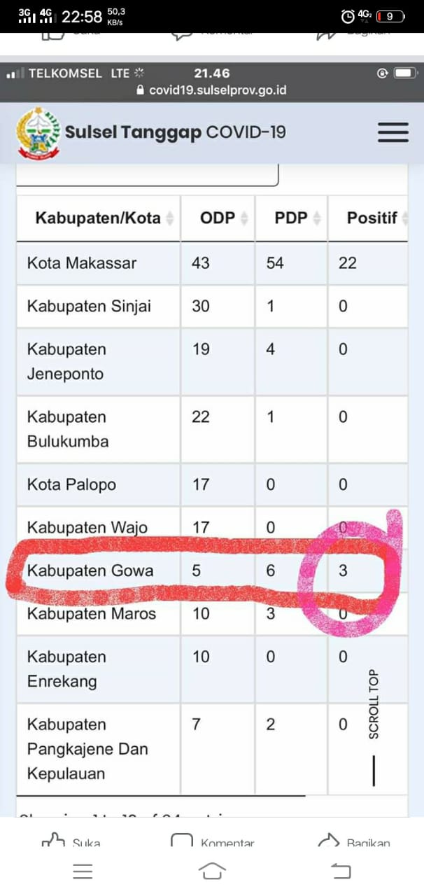 SULSELBERITA.COM. Gowa,– Setelah Kepala Dinas Kesehatan Provinsi Sulawesi Selatan, Ichsan Mustari mengumumkan hasil swap terbaru ada 14 positif covid-19 di Sulsel, tiga diantaranya berasal dari Kabupaten Gowa.