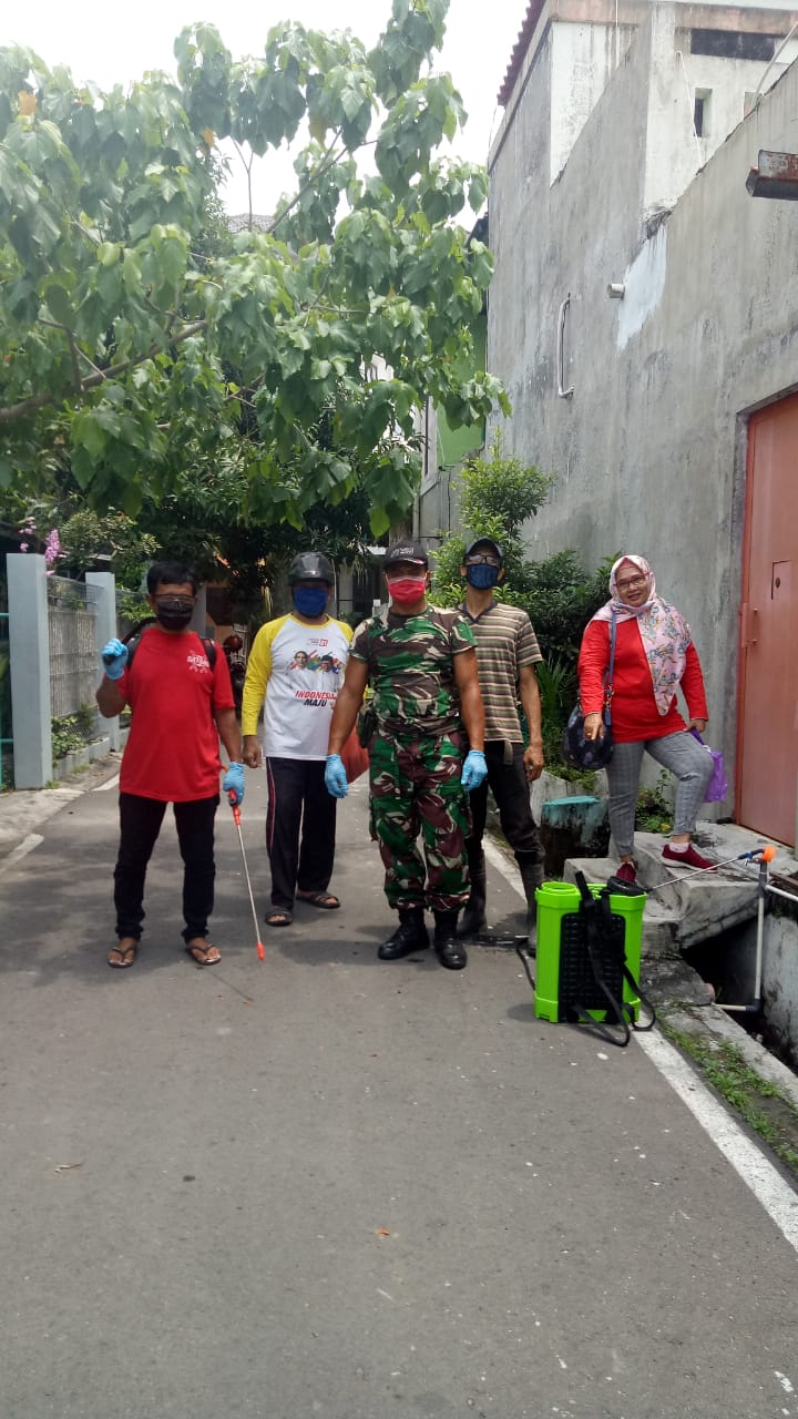 Dalam pelaksanaannya Babinsa Bersama masyarakat secara gotong royong melaksanakan penyemprotan Mandiri /Swadaya  di lingkungan RT 04, RW 06, dan di RT 01 sampai dengan 04 RW 09 Kel. Manahan Kec. Banjarsari Kota Surakarta.
