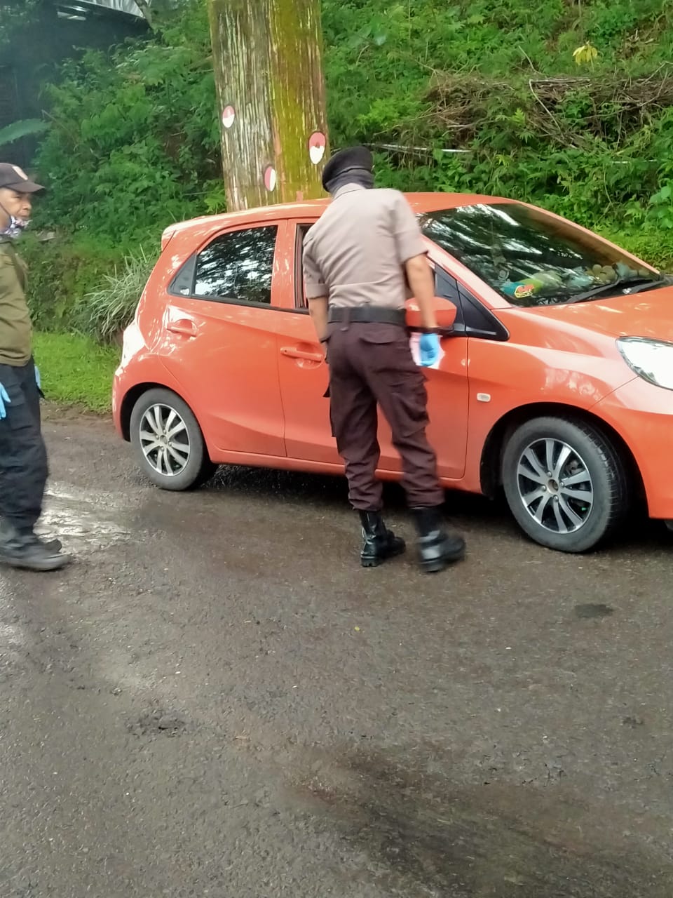 Pemeriksaan kendaraan ini di laksanakan di jalan masuk wilayah Tinggimoncong Kelurahan Malino kabupaten Gowa, Sabtu (28/3).