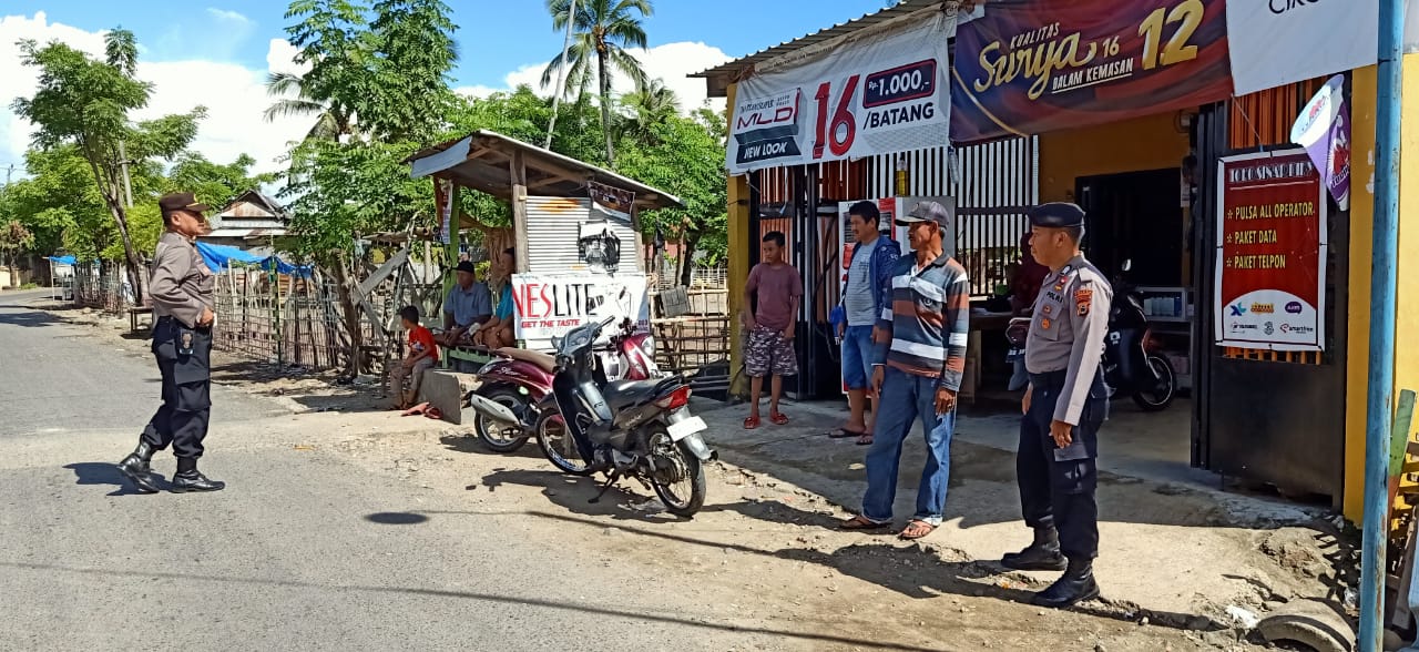 SULSELBERITA.COM. Takalar – Personil Polsek marbo Polres Takalar Ipda Karsono,S.Sos Selaku Kanit Binmas bersama Ps.Kanit Sabhara Bripka Iswan gencar melakukan patroli di wilayah hukum Polsek marbo dan memberikan himbauan Kamtibmas terkait pencegahan virus Corona atau Covid-19 di lingkungan masyarakat, Senin 30/03/2020