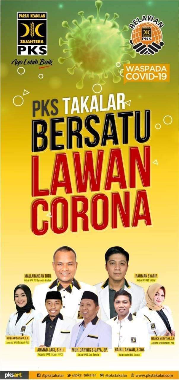Wabah covid-19 ( Virus corona) yang dikenal sangat mematikan yang melanda Dunia, khususnya di negeri ini, Fraksi PKS Takalar Bersatu melawan Virus Corono dengan menyumbangkan gajinya siap dipotong.