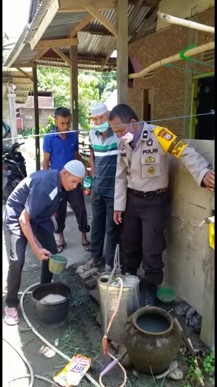 Bhabinkamtibmas Kelurahan Sombalabella Lakukan Penyemprotan Disinfektan Diwilayah Binaannya