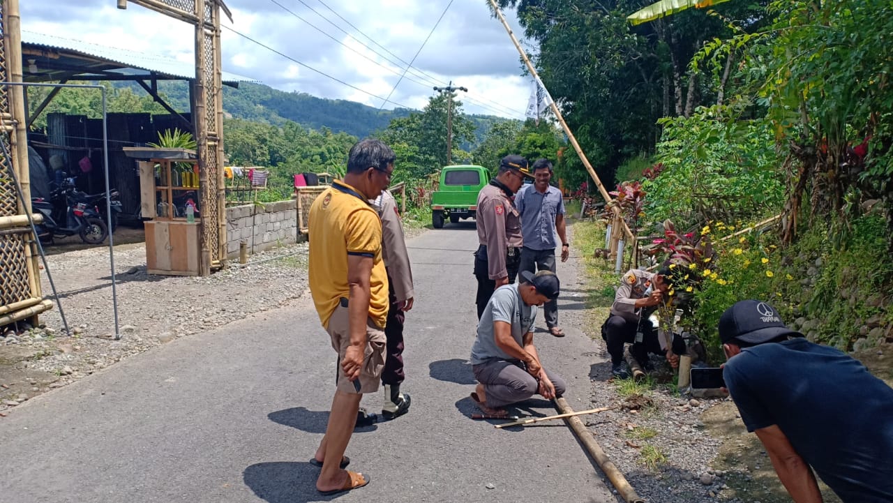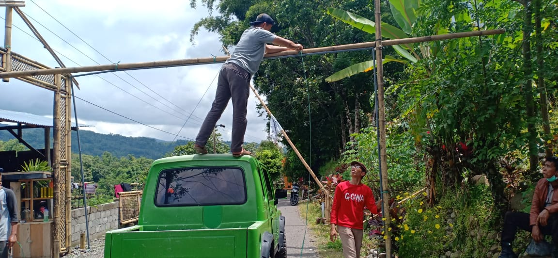 SULSELBERITA.COM. Gowa, — Kapolsek Tinggimoncong Polres Gowa IPTU Hasan Fadhlyh SH bersama Personilnya dan Di dampingi langsung Camat Pargi H.Muh Guntur S.Sos membuat alat penyemprotan disenfektan,