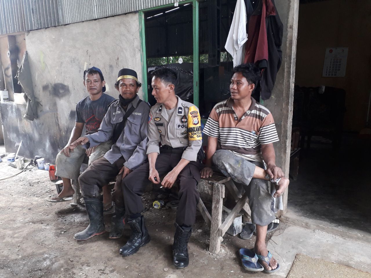 SULSELBERITA.COM. Takalar – Bhabinkamtibmas Kel. Bontolebang, Polsek Galut Polres Takalar, Aipda Nasir, silahturahim dan tatap muka dengan pemilik bengkel Dico, dalam rangka menyampaikan himbauan pemerintah dan Maklumat Kapolri dalam upaya pencegahan penularan Virus Covid 19 atau Virus Corona, Sabtu, 4 April 2020 sekitar jam 13.00 wita.