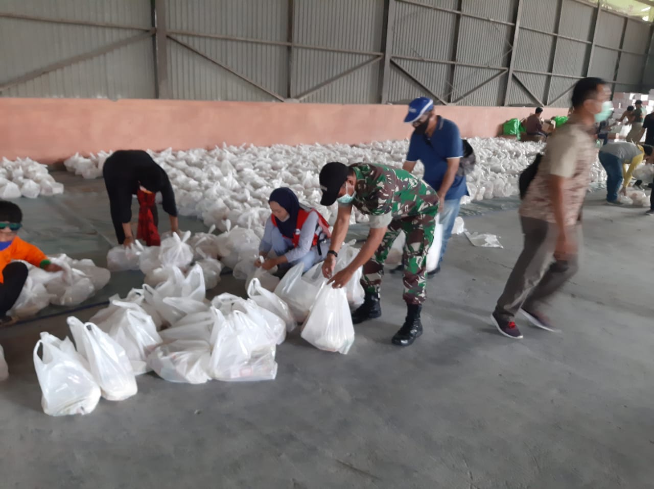 Danramil 04/Jebres dan Babinsa Bantu Packing Bantuan Sembako Gratis
