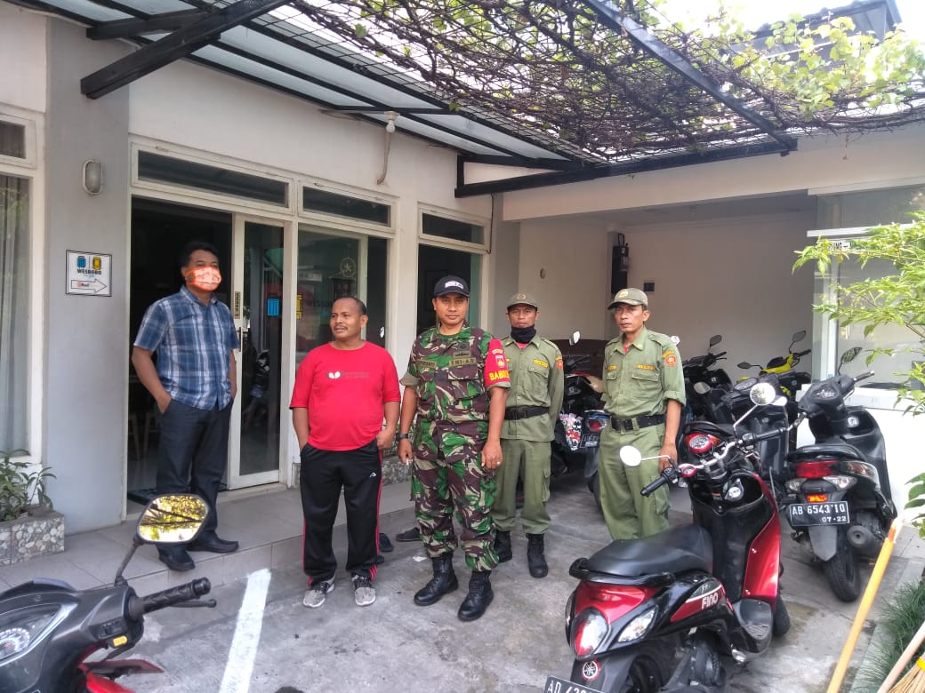SULSELBERITA.COM. Surakarta, Sampai saat ini wilayah kita masih berjuang untuk melawan Covid – 19 , maka pada hari sabtu tanggal 4 April 2020 pukul 08.00 WIB sd selesai babinsa kestalan Serda Supriyanto Koramil 02 Banjarsari Kodim 0735 Surakarta bersama Lurah Suyono dan Linmas melaksanakan Patroli dan himbauan kepada warga termasuk hotel-hotel di wilayah Kelurahan Kestalan.