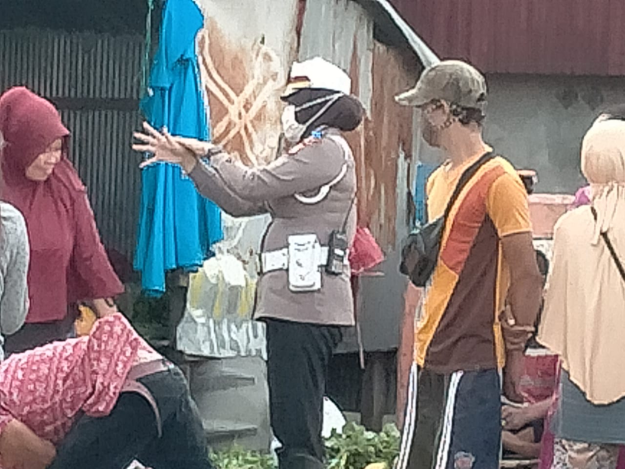 Aksi yang dilakukan Hj Hartati saat memberikan motivasi sontak menjadi perhatian masyarakat yang ada di pasar tersebut dan sembari warga mengatakan” Terimakasih Ibu Polwan atas Himbauan dan Motivasinya.(**)