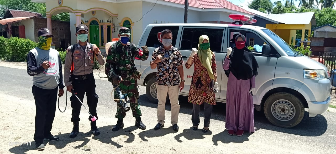 Penyemprotan disinfektan ini dilakukan bekerja sama dengan Pihak Puskesmas dan di semprotkan di setiap sudut desa yang meliputi tempat ibadah, kantor desa, tempat umum serta pemukiman warga.