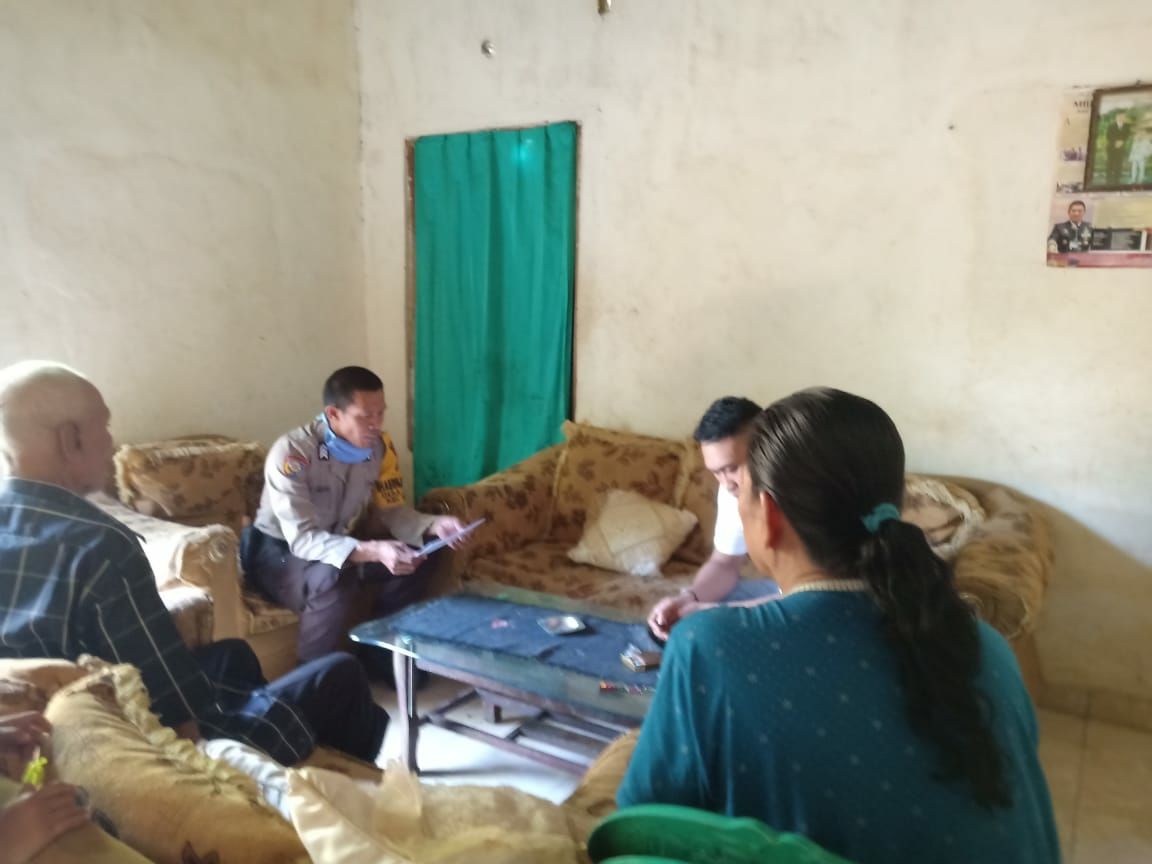 SULSELBERITA.COM. Takalar -Bhabinkamtibmas Polsek Polut Polres Takalar Desa Towata Brigpol M. Amir melaksanakan door to door system di rumah bapak Nongke Dg. Ngitung Di Dusun Belaka Desa Towata Kec. Polongbangkeng Utara Kabupaten Takalar. Senin 06/04/2020.