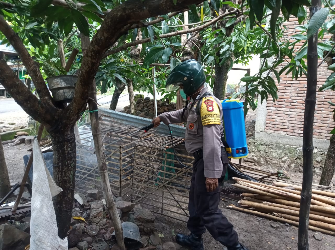 SULSELBERITA.COM. Takalar – Babinkamtibmas dan Babinsa Desa Soreang Kecamatan Mappakasunggu bergerak bersama warga menyemprotkan disinfektan ke tempat-tempat kumpul warga serta rumah warga untuk mencegah menjalarnya wabah virus covid-19 atau virus corona di masyarakat, Selasa (07/04/2020).