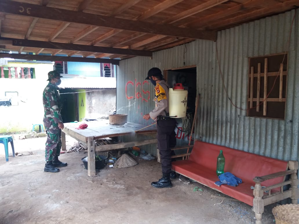 Sinergitas Bhabinkamtibmas Kelurahan Bulukunyi, Babinsa dan Lurah Lakukan Penyemprotan Disinfektan Di Wilayah Binaannya
