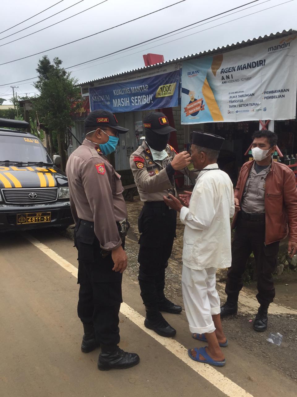 Di tengah patroli dialogisnya kapolsek membagikan masker kepada warga binaanya yang kebetulan berpapasan saat patroli untuk memutus mata rantai dan penyebaran virus corona.