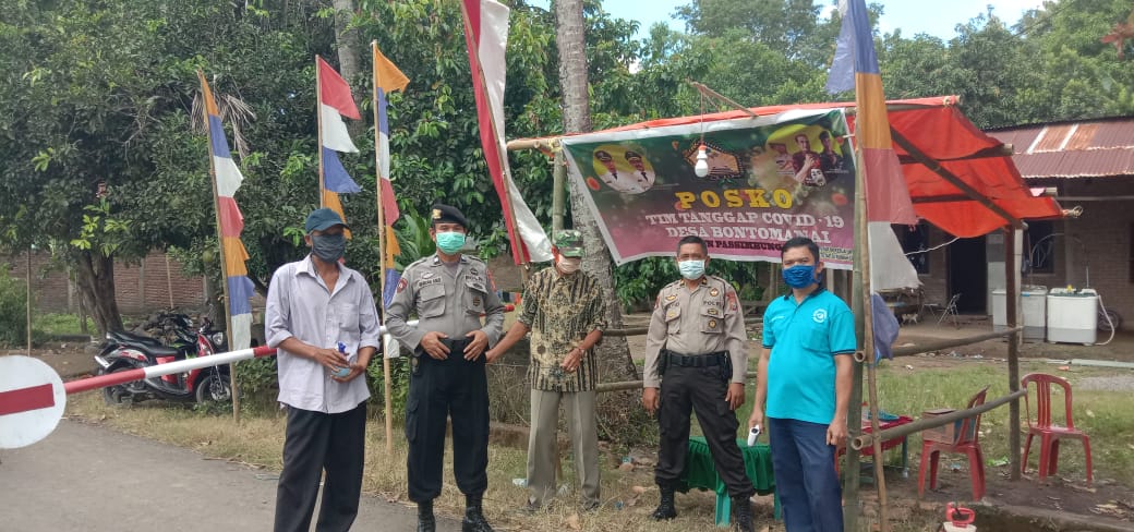 SULSELBERITA.COM. Gowa, — Wakapolsek Bajeng Polres Gowa Iptu Hapid melaksanakan pemantauan di Posko Penanggulangan Virus Corana di Desa Bontomanai Kecamatan Bajeng Barat Kabupaten Gowa yang berbatasan langsung dengan Kab. Takalar, Senin (13/04/2020).
