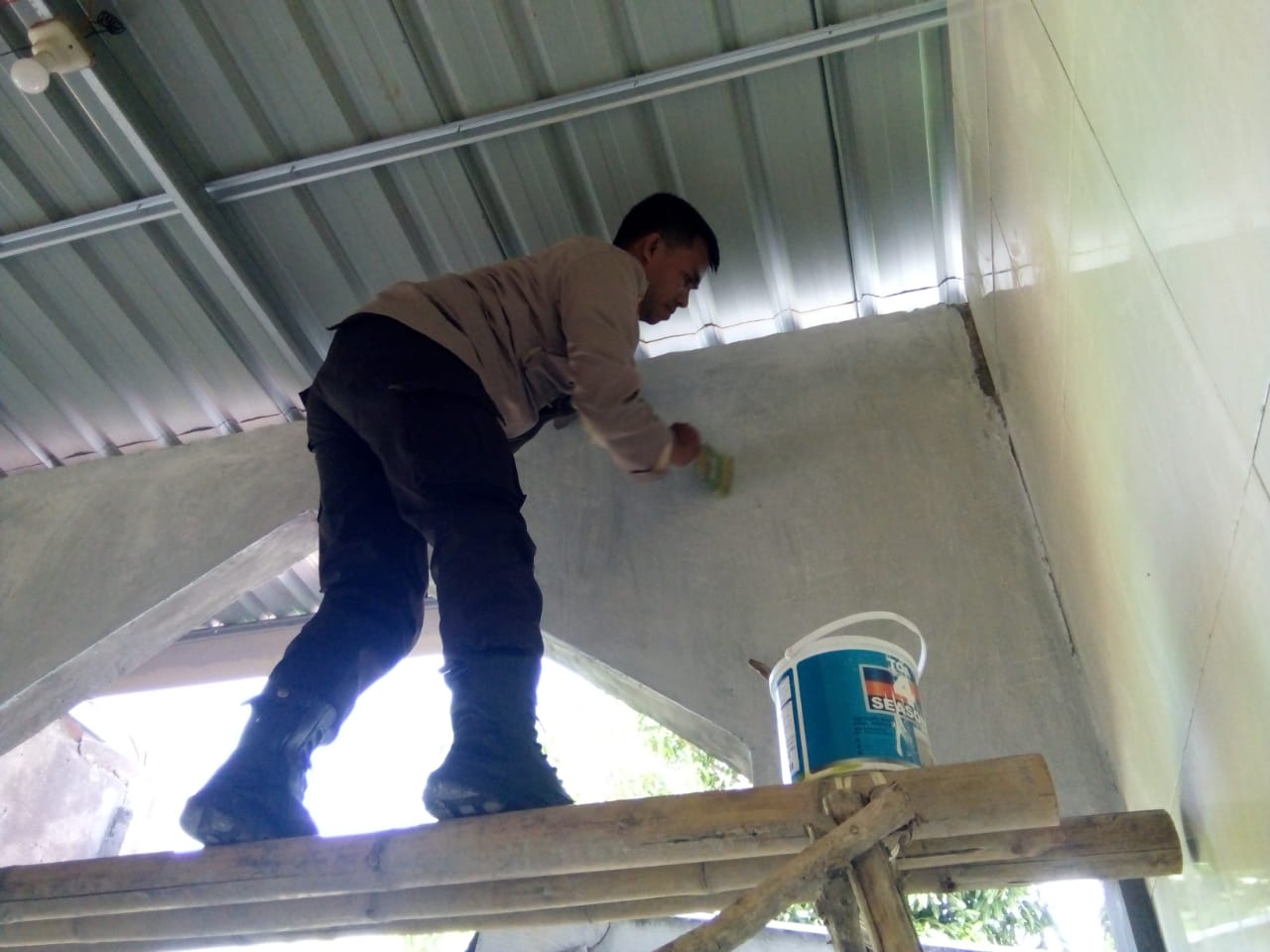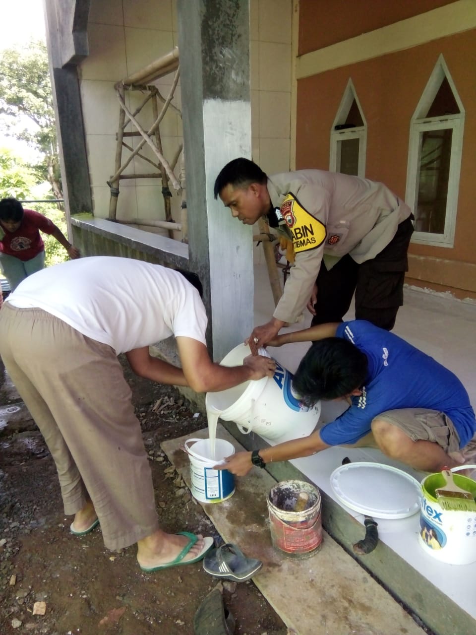 Dalam kegitan kerja bakti tersebut, dilakukannya pengcetan tembok mesjid bersama dengan para santri pondok tahfids quran bertempat di mesjid muhajrin dusun Bonto Tinggi desa Towata Kecamatan Polut Kabupaten Takalar.