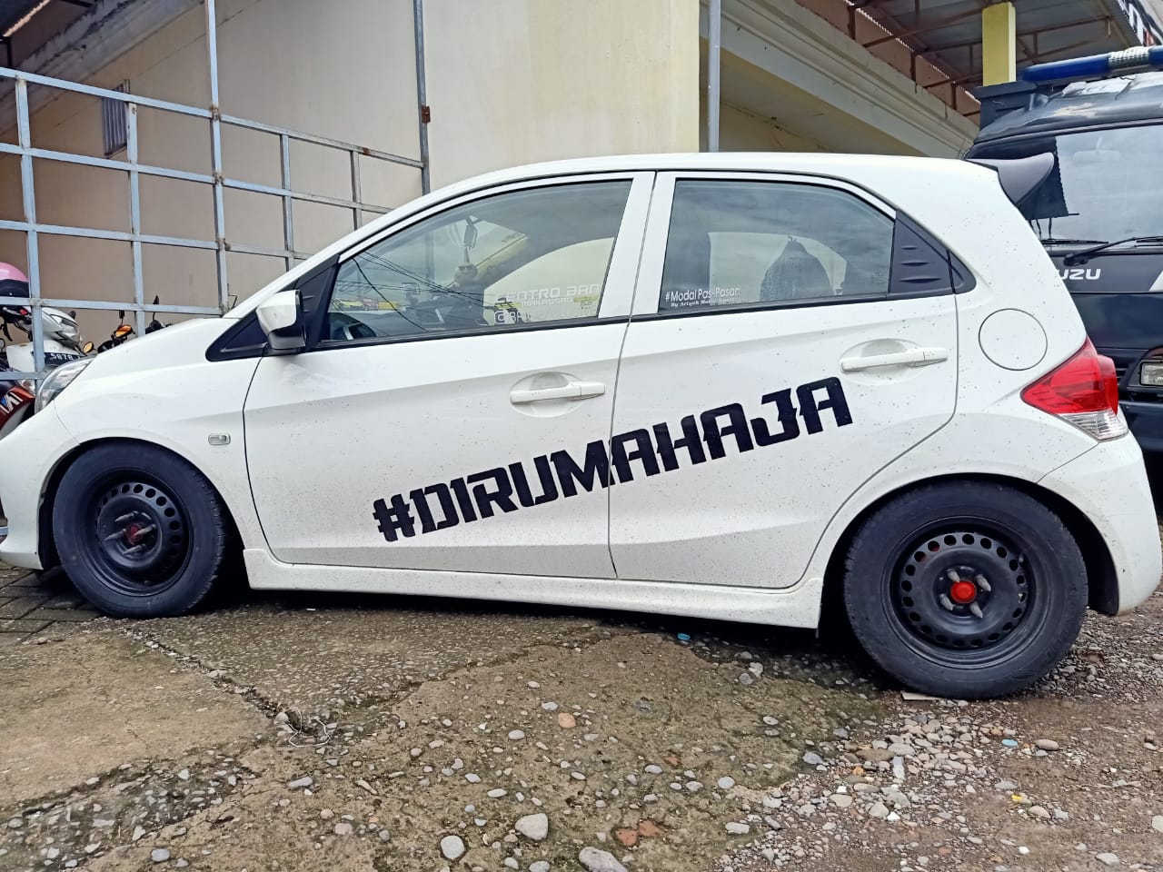 Pada mobil tersebut tertulis dengan hastage ” #DIRUMAHAJA”, kemudian diabadikan melalu pengambilan foto untuk diviralkan.