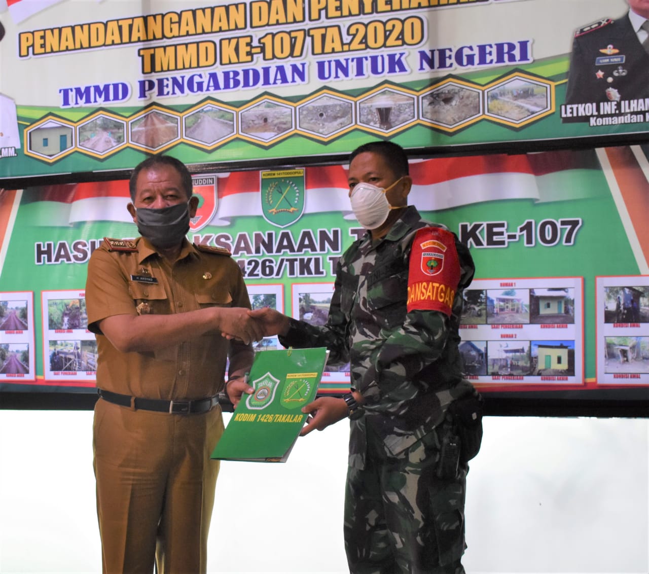 “Seyogyanya ada penutupan pelaksanaan TMMD ini, namun karena situasi pandemik covid penutupan tidak dilaksanakan, digantikan dengan penyerahan hasil TMMD satgas 107. Pengerjaan ini dilaksanakan selama 34 hari mulai 16 Maret,” papar Letkol Inf. Ilham Yunus.