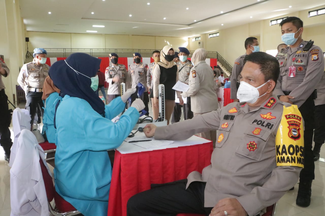SULSELBERITA.COM. Makassar, — Kepolisian Daerah Sulawesi Selatan menggelar donor darah guna membantu pengadaan stok darah di Palang Merah Indonesia (PMI) setempat di tengah wabah COVID-19, Rabu (15/04/2020) di Gedung Serbaguna Mapolda Sulsel.