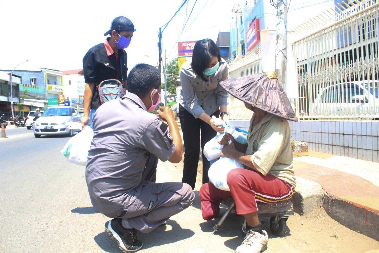 Dengan kesigapannya meski matahari siang begitu sangat menyengat, namun tak mengurungkan niat seorang Kasubbag Humas bersama anggotanya dan seorang Jurnalis yang diketahui sehari-harinya sering memberikan informasi ke warga itu, langsung mengahampiri kakek tua yang memakai kereta roda kemudian memberikan sembako dan sebuah masker.