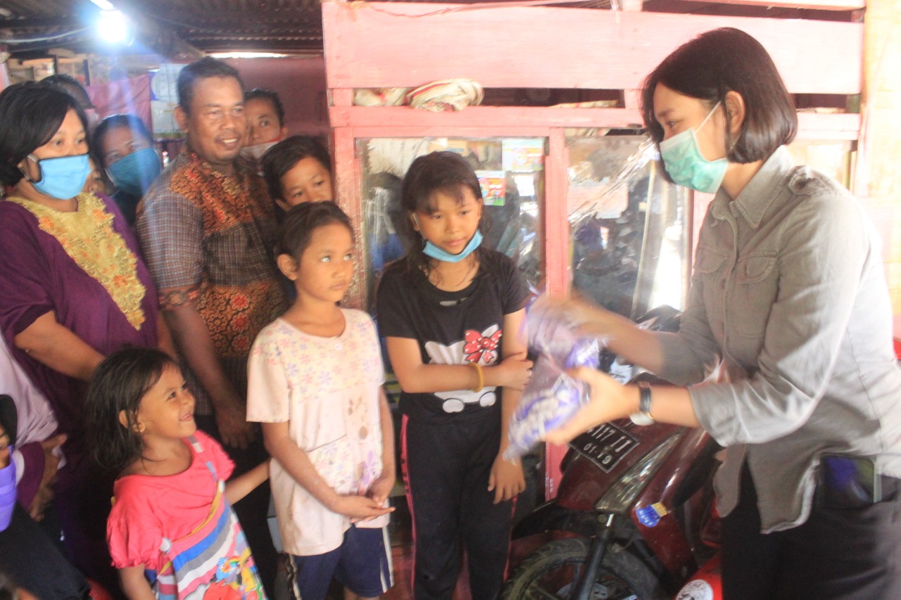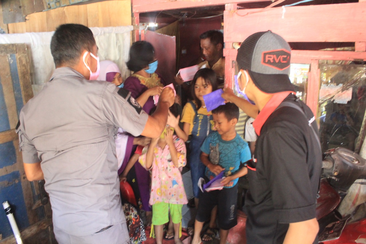 Selain lima kepala rumah tangga yang dibagikan sembako, Tim Polres Gowa berbagi masker kepada warga setempat