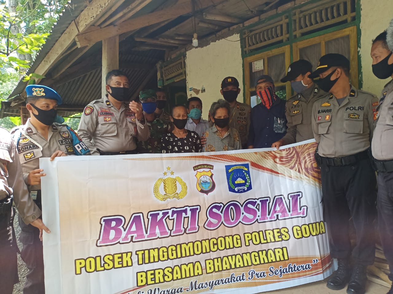 SULSELBERITA.COM. Gowa,– Polsek Tinggimoncong Polres Gowa tetap peduli kepada warga prasejahtera di wilayah binaannya terlihat saat memberikan bantuan berupa sembako.