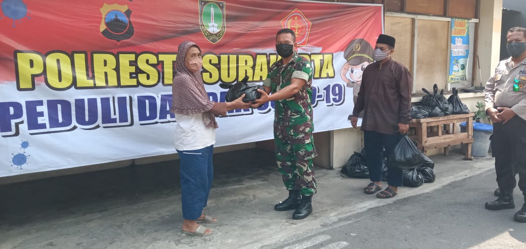 Pemberian Bantuan Paket Sembako merupakan Wujud nyata kepedulian Aparat teritorial TNI / Polri terhadap Masyarakat yang Kurang mampu dalam menyingkapi  wabah Virus Covid -19 di wilayah Surakarta