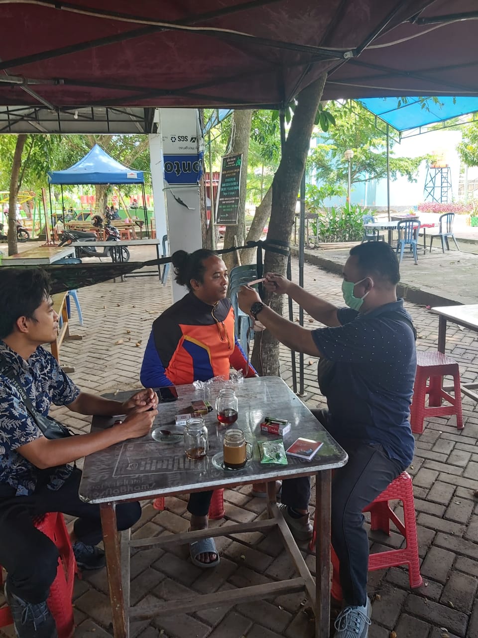 Saya apresiasi terhadap kepedulian aparat kepolisian atas sikap peduli dengan memakaikan masker kepada saya ungkap Bambang pemlik kios alun alun