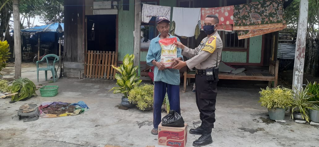 Bhabinkamtibmas Laguruda Polsek Mapsu Polres Takalar Peduli Warganya, Berikan Sembako Gratis Ke Warga Miskin