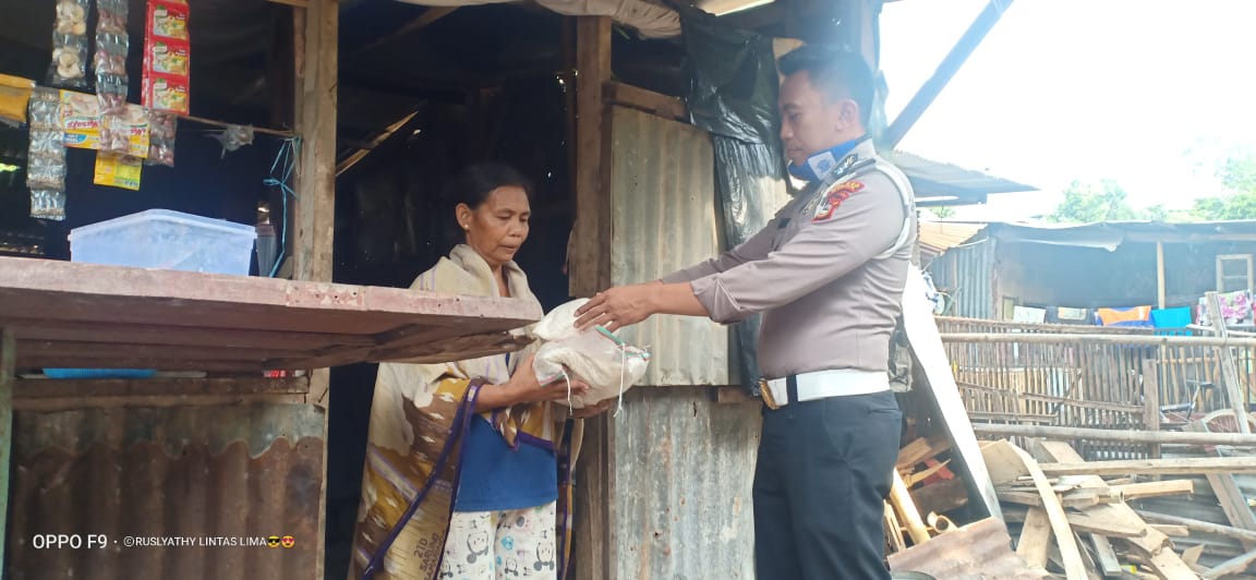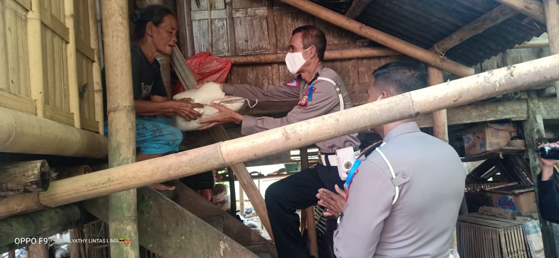 Ditengah Pandemi Corona, Sat Lantas Polres Gowa Berikan Tali Asih Untuk Warga Pra Sejahtera di Taeng
