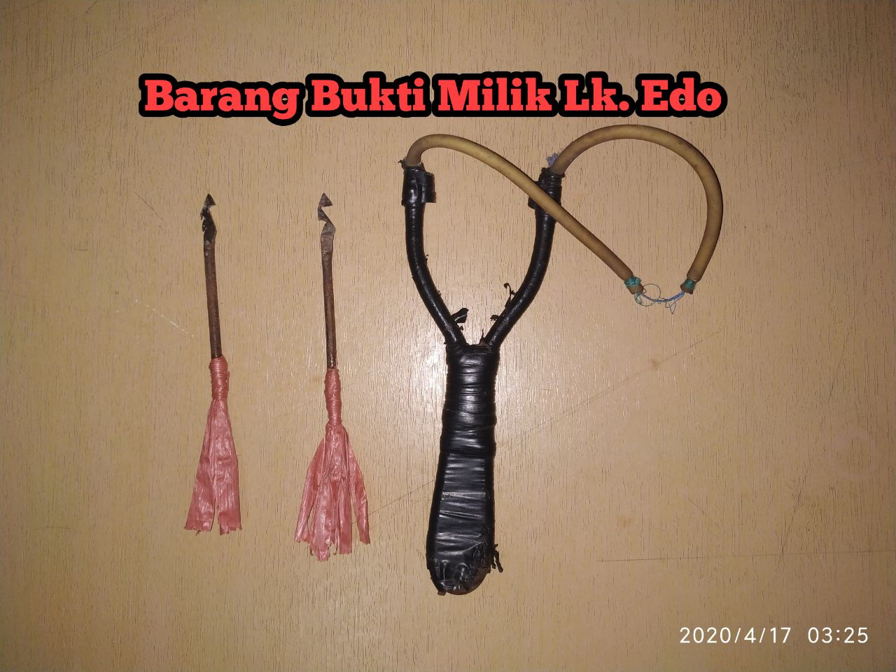 Hasil interogasi dari Lk. Edo, mengaku dan membenarkan telah melakukan pembusuran terhadap anggota polri yang membubarkan perang kelompok, dan Edo melontarkan anak panah/busur sebanyak 2 kali ke arah anggota polri.