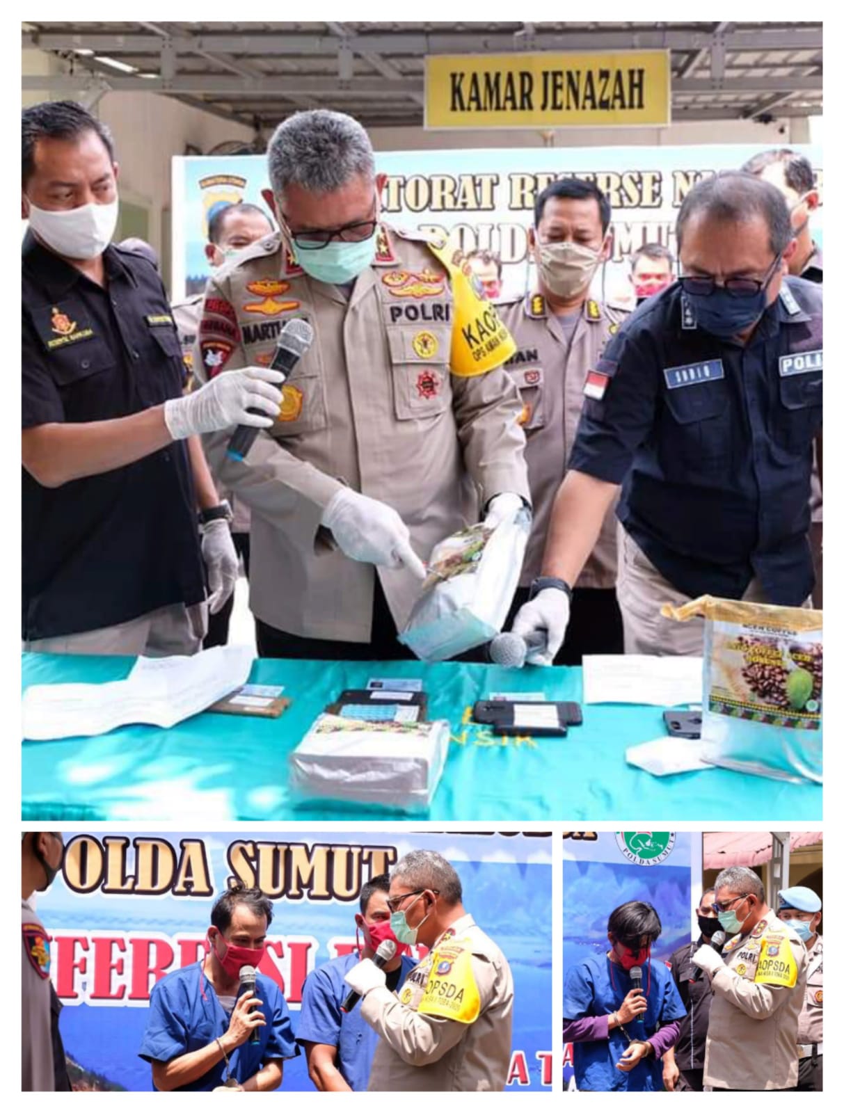 Dari di depan kamar jenazah rumkit Bhayangkara TK II Medan Kapolda Sumut di dampingi oleh Dir Narkoba Polda Sumut, Kabid Propam, Kabid Humas, Kabid Labfor dan Karumkit TK ll Medan memaparkan ada nya modus baru peredaran narkotika guna mengelabui petugas dengan mengganti bungkus narkotika yg biasa dengan teh hijau china kali ini menggunakan bungkus kopi gayo dari aceh.