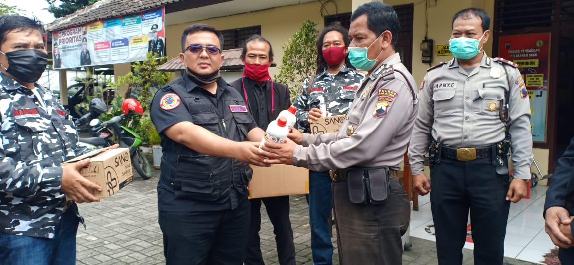 Usai Merayakan Milad Ke-7 AWPI juga menggelar baksos dengan membagikan Ribuan Hand Sanitizer dan Masker gratis ke masyarakat juga seluruh Polsek dan Koramil di Kota Salatiga, Bapak Aiptu Army Polsek Siderejo menyambut baik dan menerima langsung bantuan hand sanitizer dan masker dari tim AWPI,