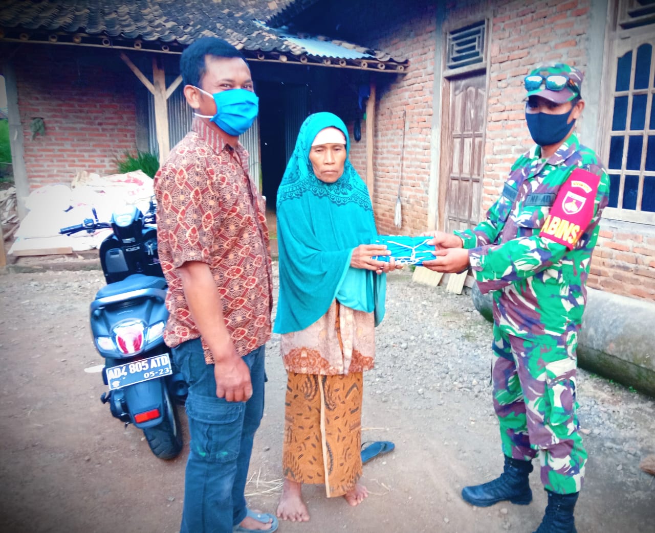 Babinsa Nogosari Sambangi Rumah Warga untuk Bagikan Masker