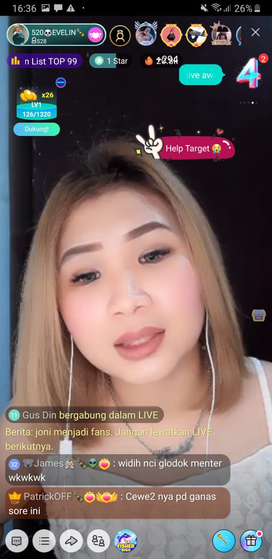 Salah satunya yang fokus mengumpulkan gift ini adalah Eveline dengan nama akunnya 520Evelin atau id @patheresiaevelin di Aplikasi Bigo. Dirinya dengan sangat berani menerima tantangan-tantangan untuk bertarung di battle game.