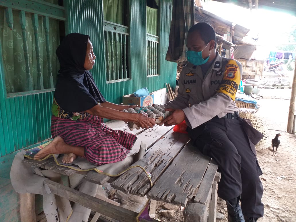 Jauh hari sebelumnya Bhabinkamtibmas telah mendata ada beberapa warga dikelurahan binaannya termasuk kreteria golongan kurang mampu, selanjutnya Bhabinkamtibmas memberikan bantuan berupa sembako kepada warga seorang janda tua kurang mampu.