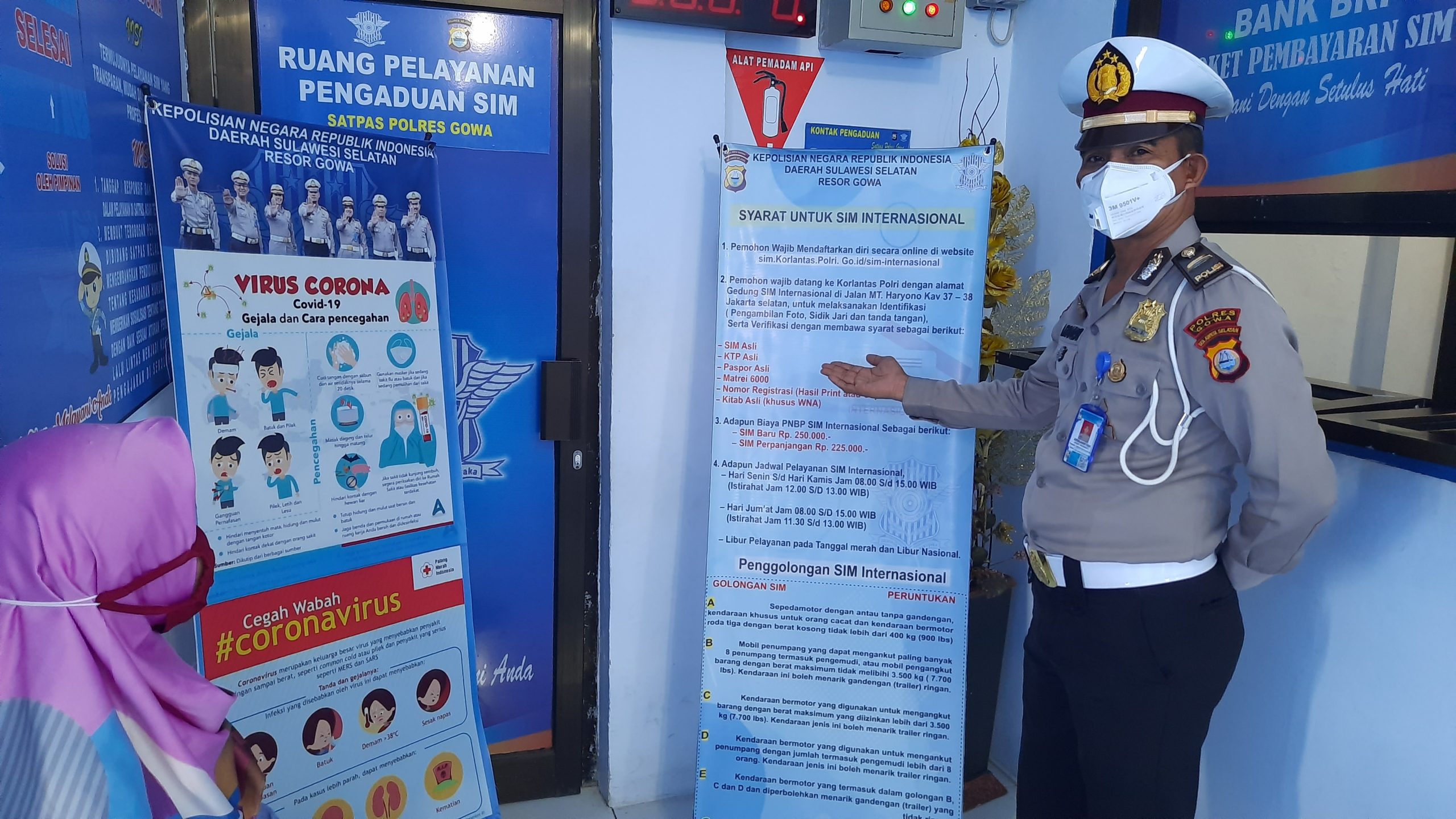 SULSELBERITA.COM. Gowa, — Siang ini Kanit Regident Sat Lantas Gowa Ipda Ardiansyah mensosialisasikan SIM Internasional di ruang Satuan Pelaksana penyelenggara adminstrasi sim Polres Gowa,Senin 20/04/2020.