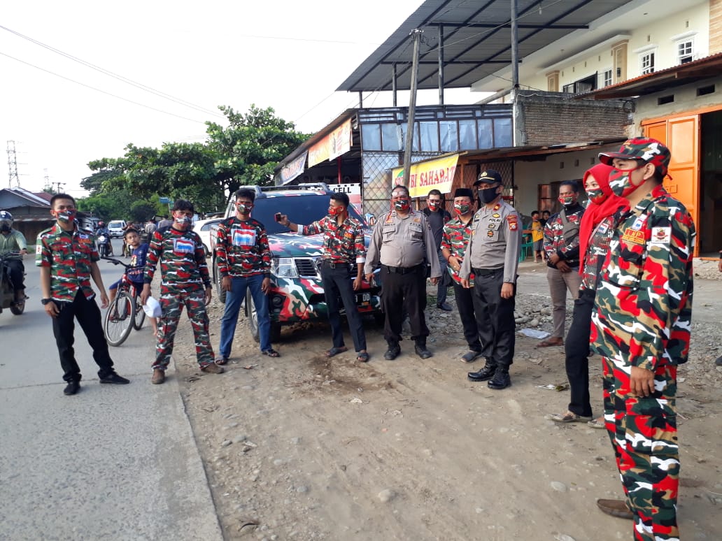 SULSELBERITA.COM. Gowa, — Ormas Laskar Merah Putih Markas Cabang Gowa menggandeng Pihak Kepolisian Sektor (Polsek) Pallangga membagikan ratusan masker kepada para pengendara di pertigaan Jalan Poros Kelurahan Tetebatu, Kecamatan Pallangga (Senin, 20/4/2020).