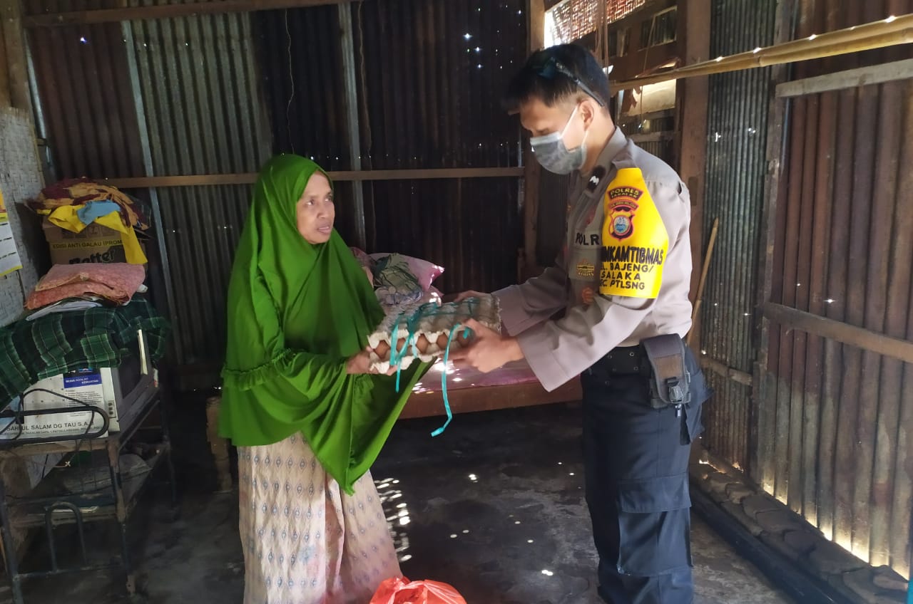 Bhabinkamtibmas Polsek Pattallassang Salurkan Bantuan Ditengah Pandemi