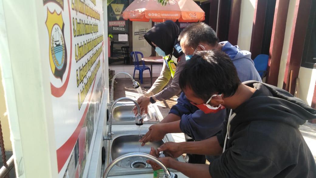 SULSELBERITA.COM. Gowa, — Guna menangkal penyebaran virus Covid 19 sat Lantas polres Gowa Mengajak warga masyarakat yang berkunjung ke Polres Gowa Untuk membudayakan cuci tangan, Selasa 21/04/2020.