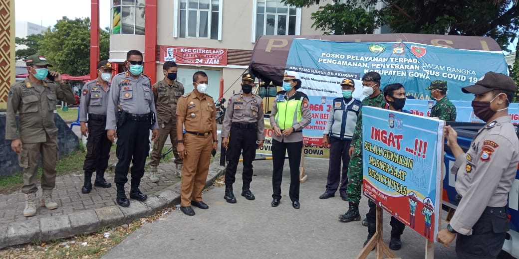 Pada Selasa (21/04/2020) siang ini di Pos PSBB atau Pos siaga pencegahan dan penularan coronavirus batas kota gowa makassar, terlihat Tripika Somba Opu Camat Kapolsek dan Koramil melakukan giat pemeriksaan suhu badan warga masyarakat pemakai jalan, memberikan dan menyampaikan himbauan cara-cara pencegahan dan meminimalisir penularan coronavirus untuk memutus mata rantai penyebaran virus corona. Nampak sinergitas tripika terlihat antusias sebagai wujud kepeduliaan kepada warga masyarakat atau pemakai jalan yang melintas di Pos PSBB batas Gowa Makassar jalan Sultan hasanuddin-jl sultan Alauddin makassar.