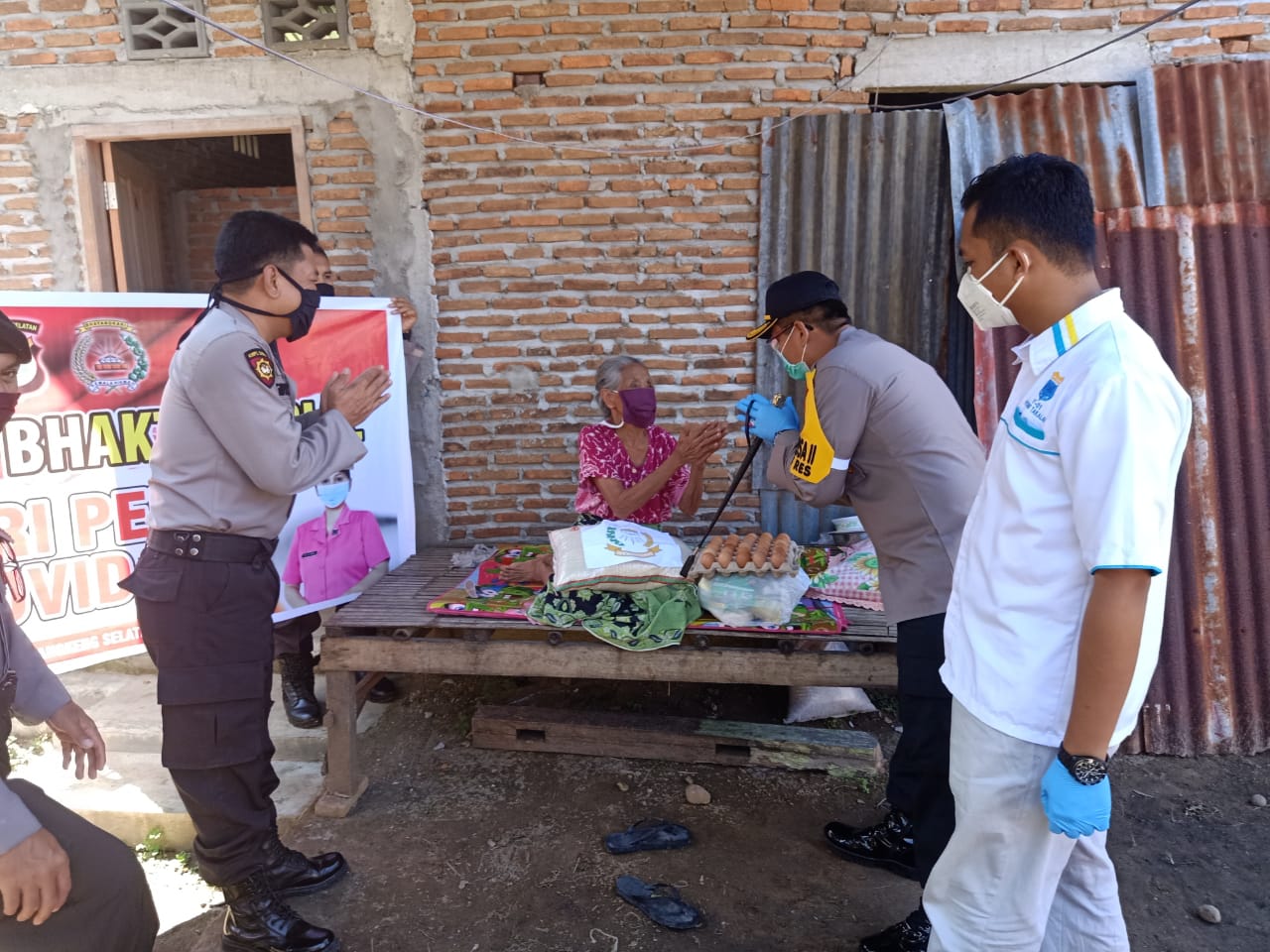 Dalam kesempatan itu, salah satu warga penerima sembako yaitu Daeng Taco menyampaikan terima kasih kepada jajaran kepolisian karena telah memberikan bantuan sembako untuk dirinya. Bantuan yang diterima Daeng Taco itu berbentuk sembako.