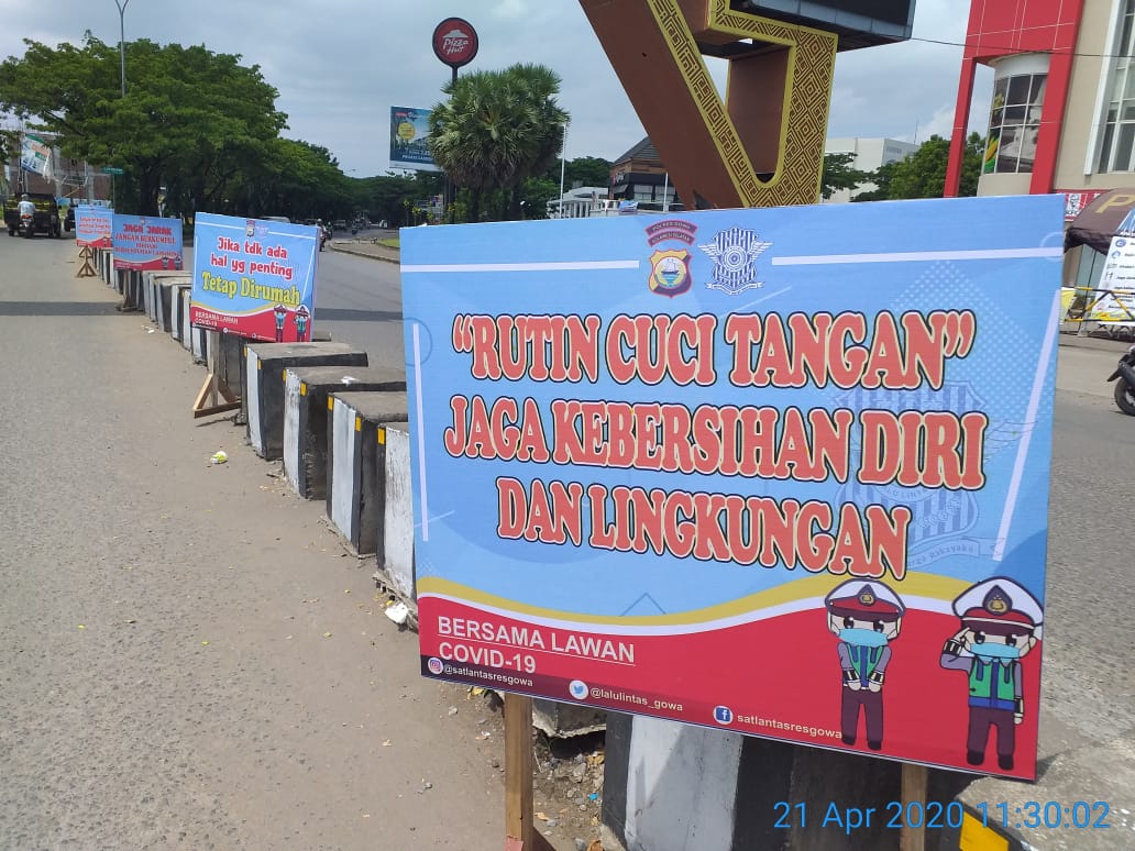 SULSELBERITA.COM. Gowa,– Siang ini Sat Lantas Polres Gowa Memasang Papan Bicara di beberapa titik pos penanganan pencegahan penyebaran virus Covid 19 (Corona) Selasa 21/04/2020.