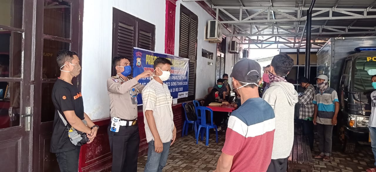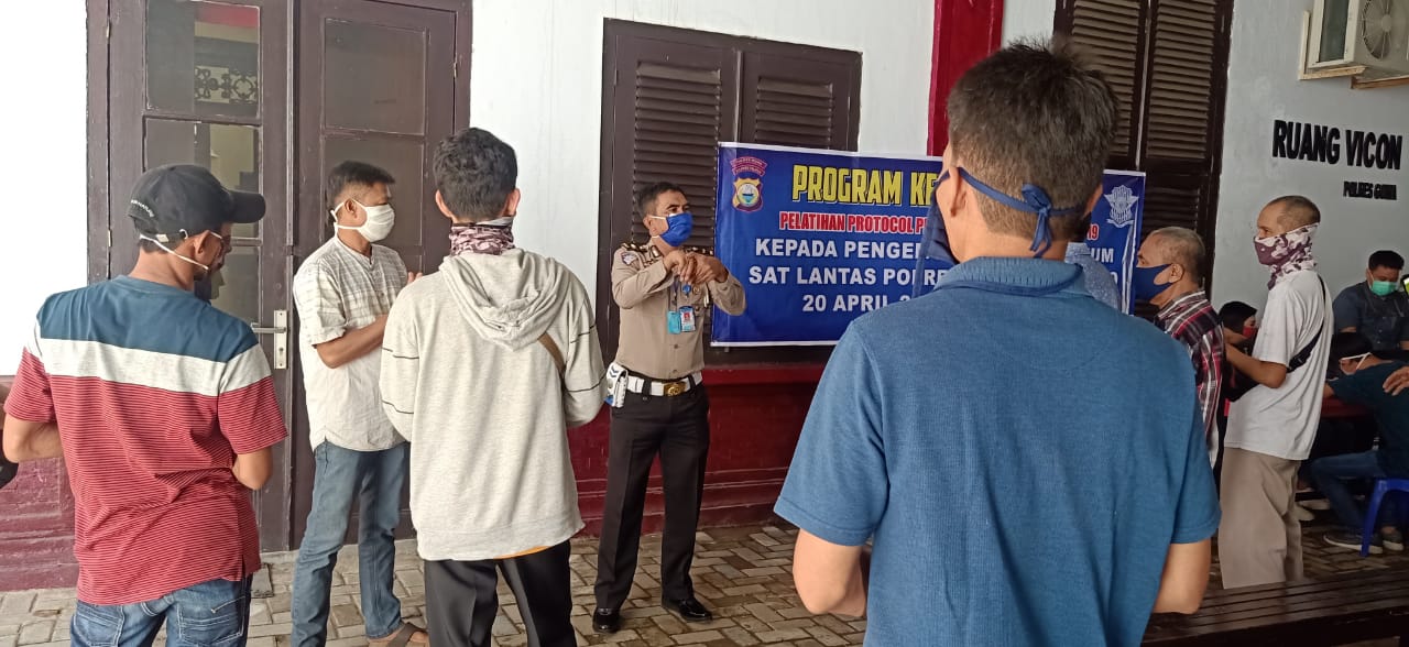 SULSELBERITA.COM. Gowa,– Memasuki hari ke 3 Pelatihan Protokol penanganan Penyebaran virus Covid 19 Sat Lantas Polres Gowa Membagikan Tips tata cara penggunaan Masker agar dapat memutus mata rantai virus Covid 19 ( coronavirus) Rabu 22/04/2020 sekitar pukul 10.00 wita di aula endradharmalaksana Polres Gowa.