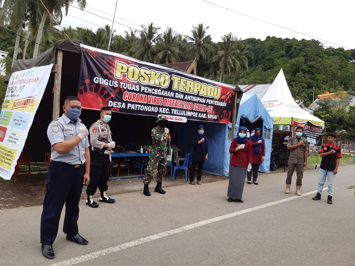 SULSELBERITA .COM. SINJAI – Posko terpadu gugus tugas pencegahan dan antisipasi penyebaran covid-19 di Kecamatan Tellulimpoe Kabupaten Sinjai melibatkan personel dari instansi terpadu dimana Polsek Tellulimpoe melibatkan Kanit Provos Polsek Tellulimpoe Aipda Jamaluddin ikut terlibat dalam posko terpadu Pencegahan dan Antisipasi penyebaran COVID-19 di Perbatasan Kab.Sinjai-Kab.Bulukumba tepatnya di Desa Pattongko Kecamatan Tellulimpoe Kab. Sinjai. Kamis (23/4/2020)