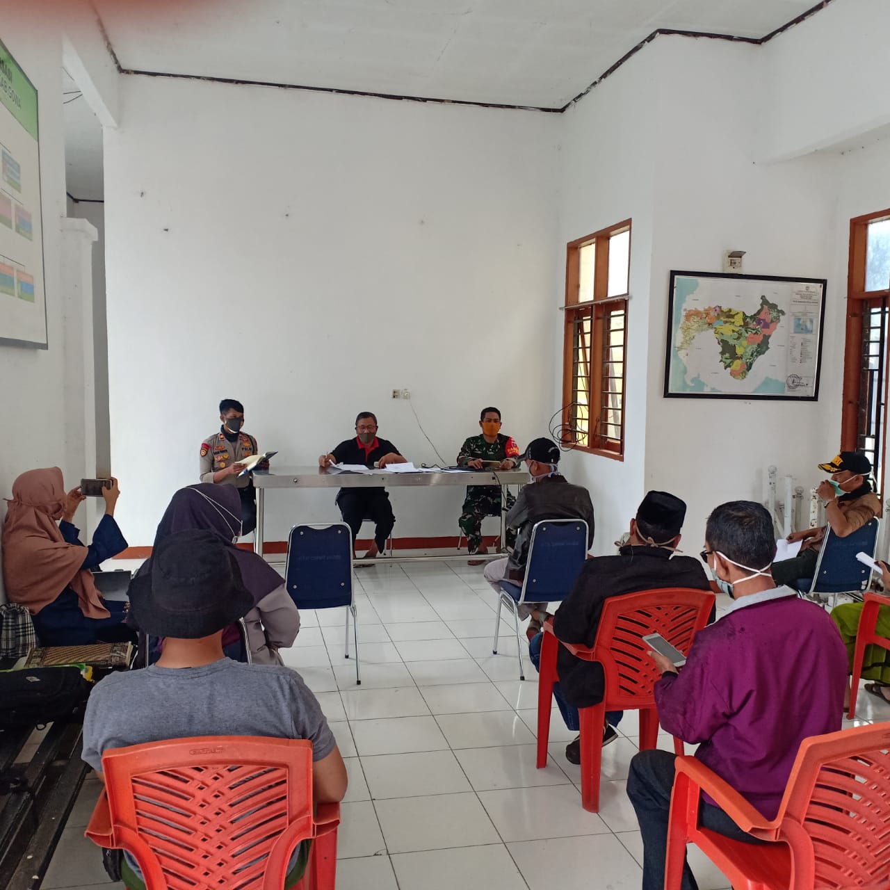 Rapat verifikasi penerima bantuan non pkh di tengah pandemik virus corona di laksanakan di aula kantor camat parigi.