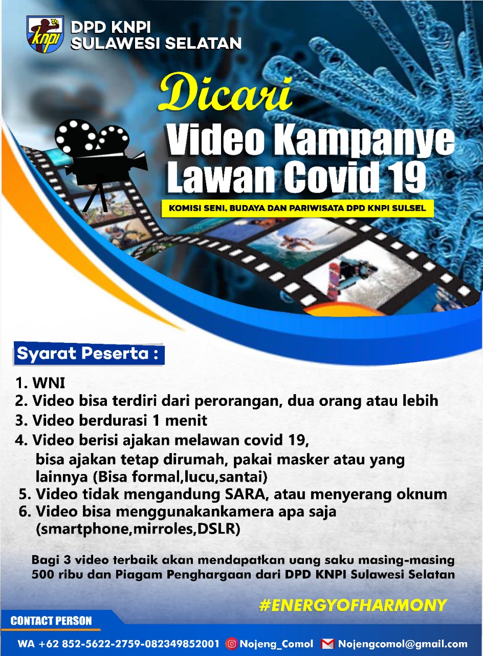 Menurut ketua Komisi Seni, Budaya dan Pariwisata Yardi, lomba video kampanye lawan covid ini melengkapi sekian banyak aksi sosial yang telah dilaksanakan oleh KNPI Sulsel, baik berupa pembagian masker dan hand sanitizer, penyerahan APD, maupun penyerahan sembako di asrama mahasiswa daerah yang ada di Makassar.