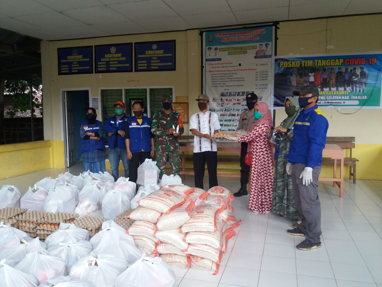 Adapun Bantuan tersebut berupa sembako dari Dinas Sosial Kabupaten Takalar sebanyak 41 paket dengan masing-masing berisi telur 1 rak, beras 10 kg, indomie 1 dos, minyak goreng 2 liter, teh 1 dos, gula pasir 2 kg, terigu 1 kg dan ikan sarden 4 kaleng.