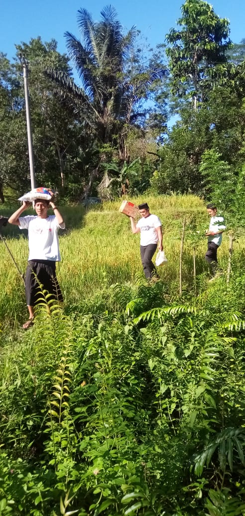 Tak tanggung-tanggung team Barito ini bahkan relah berjalan kaki melewati persawahan untuk menjangkau masyarakat yang benar-benar membutuhkan bantuan