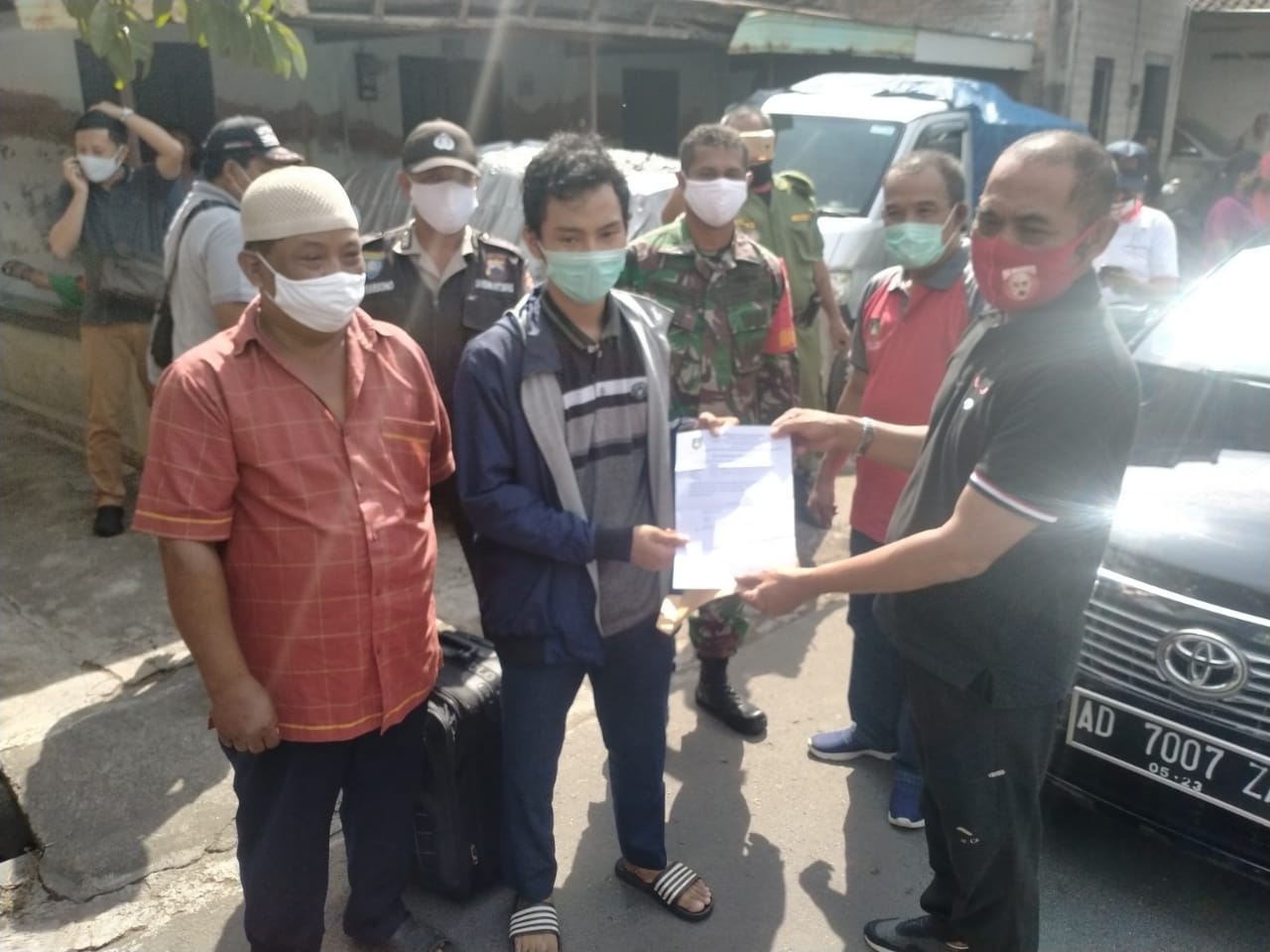 SULSELBERITA.COM. Surakarta – Babinsa Kelurahan Sumber Koramil 02/Banjarsari Kodim 0735/Surakarta Sertu Yusuf. Arimatia melaksanakan penjemputan dan pemulangan Warga Sumber atas nama Saudara Yusuf Ferry 19 Tahun, Agama Islam, ikut orang tua yang beralamat di RT.03 RW 14 Sumber Trangkilan Banjarsari Surakarta yang telah selesai menjalani karantina selama 14 Hari Di posko Covid-19 Gedung Graha Wisata Niaga Jl. Slamet Riyadi Sriwedari Laweyan Surakarta, (26/4)